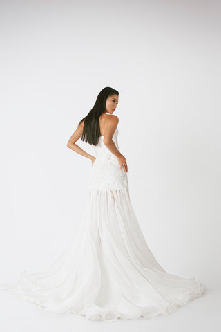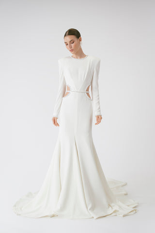 A brand of handcrafted designer dresses from Toronto, Canada, Missia rests on the concept of a modern bride—confident, strong, free, yet feminine and sensitive at the same time. Striving to match elegance and modernity, Missia designers mix classic silhouettes and traditional adornment with minimalist contemporary aesthetics. This blend results in gowns that are both timeless and fashion-forward.